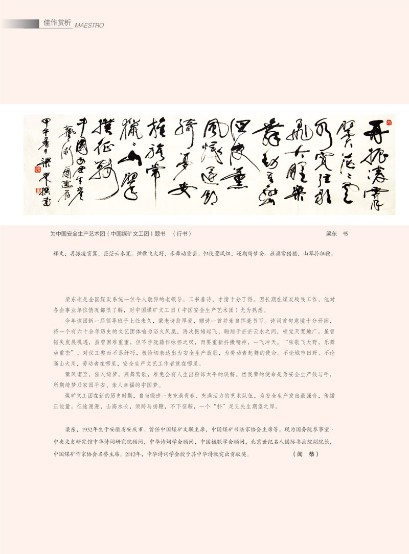 封二 為中國(guó)安全生產(chǎn)藝術(shù)團(tuán)題書(shū)(行書(shū)) 梁 東