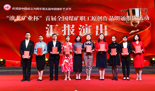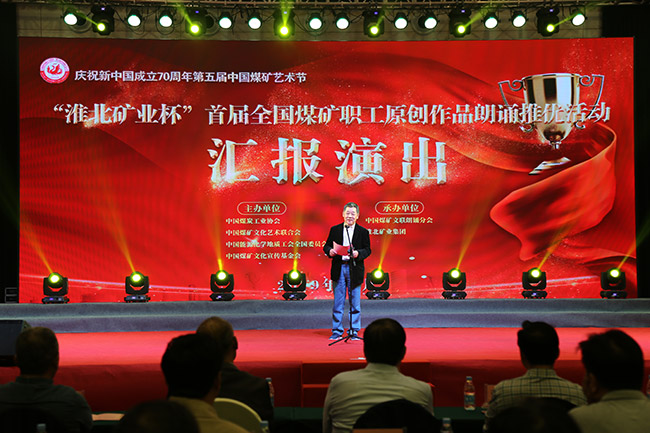 10月22日至25日,由中國煤炭工業協會、中國煤礦文化藝術聯合會、中國能源化學地質工會全國委員會、中國煤礦文化宣傳基金會聯合主辦,淮北礦業集團承辦的“慶祝新中國成立70周年”第五屆中國煤礦藝術節“淮北礦業杯”首屆全國煤礦職工原創作品朗誦推優活動在安徽省淮北市成功舉辦。期間,來自全國煤炭行業17個單位的33個朗誦作品表演者等共80多人參加現場朗誦會,并進行了匯報演出。