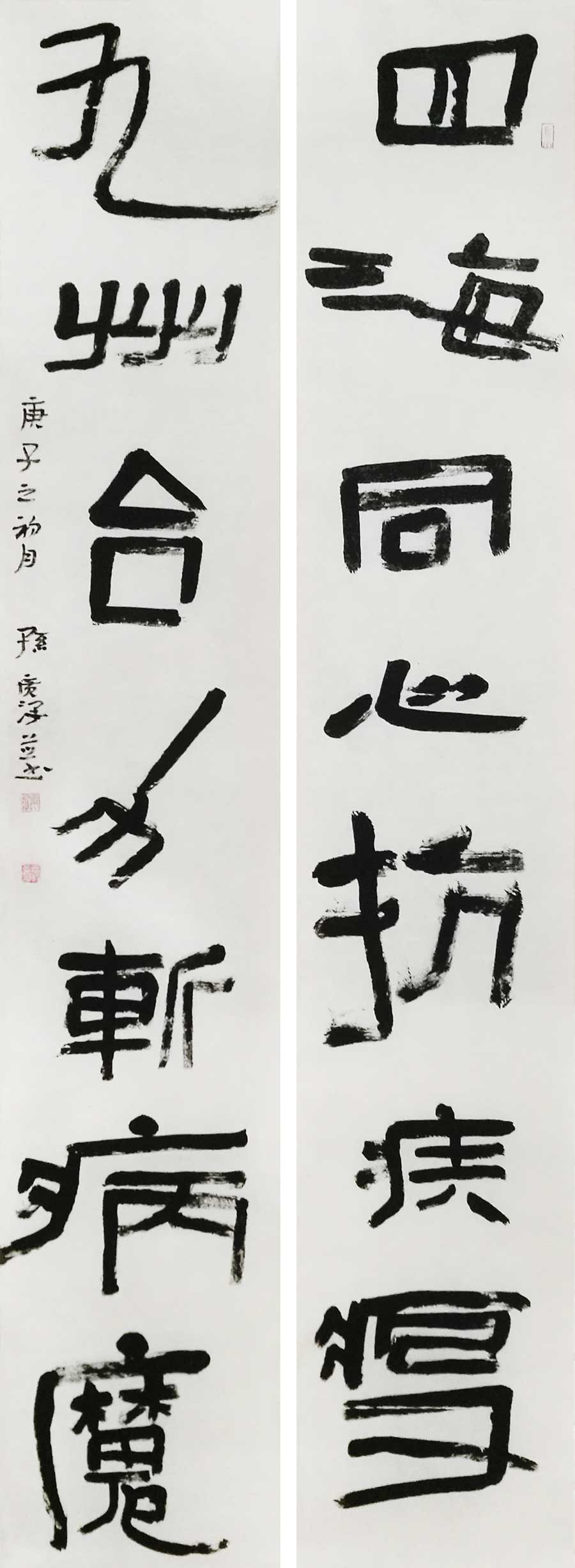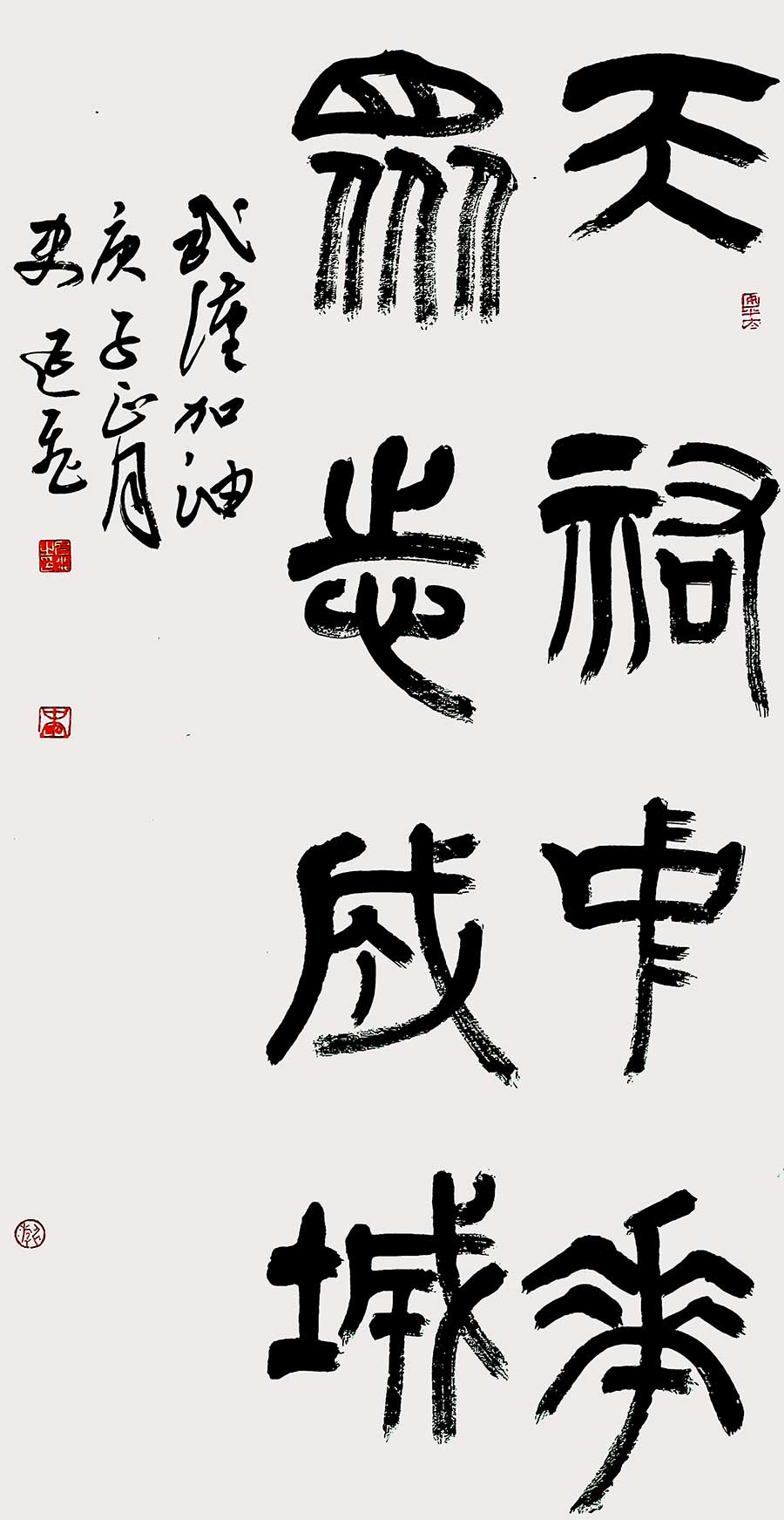 庚子新春,一場來勢洶洶的新型冠狀病毒感染的肺炎疫情在全國蔓延。面對疫情,習近平總書記作出重要指示,要求“廣泛動員群眾、組織群眾、凝聚群眾。緊緊依靠人民群眾堅決打贏疫情防控阻擊戰”。在武漢、在全國各地,無數奔赴在疫情一線的工作人員同舟共濟、眾志成城,冒著各種風險堅守崗位,投身于這場必須打贏的疫情防控狙擊戰。在這場抗擊疫情的戰斗中,文藝工作者不能缺席。中國煤礦文聯迅速組織全行業文藝工作者積極行動起來,為堅決遏制疫情蔓延勢頭、打贏疫情防控阻擊戰鼓與呼,創作出一大批各種形式的文藝作品,鼓舞全民士氣,致敬白衣天使,慰問病患同胞,傳遞人間真情,弘揚社會正能量。中國煤礦書法家協會迅速行動起來,組織煤礦書法家,用心研墨,以愛為紙,將自己的創作激情,化作了對疫情的關切之情,兩天時間創作了數百件鼓舞士氣,振奮精神的書法、篆刻作品。點畫間傳達了550萬煤礦工人聲援武漢,抗擊疫情的信心和決心,表達了對江城武漢的祈福、對偉大祖國的祝愿。