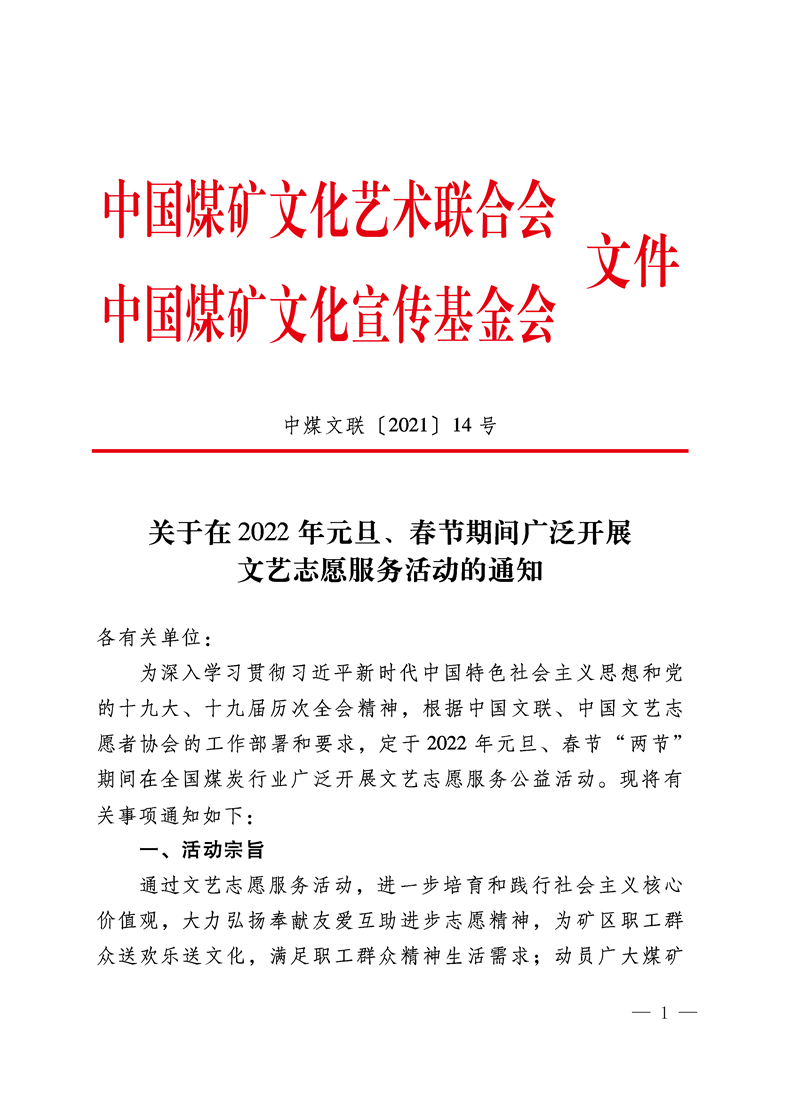 關于在2022年元旦、春節(jié)期間廣泛開展文藝志愿服務活動的通知 來源:中國煤礦文聯(lián) 作者: 時間:2021-12-24 【字體:小 大】 附件:“兩節(jié)”期間文藝志愿服務活動情況匯總表 分享到: 【打印正文】
