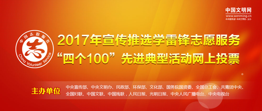宣傳推選學雷鋒志愿服務“四個100”先進典型活動從2015年開始,已經(jīng)舉辦兩屆,每次推選出100名最美志愿者、100個最佳志愿服務組織、100個最佳志愿服務項目和100個最美志愿服務社區(qū)。