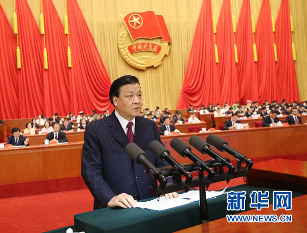 6月17日,中國(guó)共產(chǎn)主義青年團(tuán)第十七次全國(guó)代表大會(huì)在北京人民大會(huì)堂開(kāi)幕。這是劉云山代表黨中央致祝詞。新華社記者劉衛(wèi)兵攝
