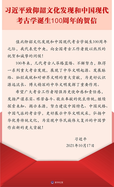 習近平致信祝賀仰韶文化發(fā)現(xiàn)和中國現(xiàn)代考古學誕生100周年
